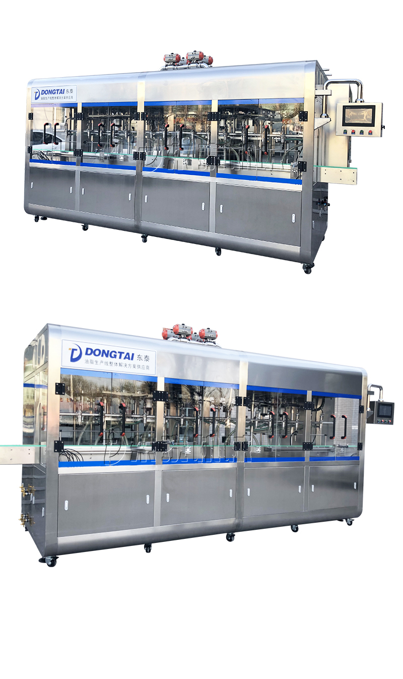 該設備主要針對油脂包裝開發的專用灌裝設備。采用東泰公司的專用灌裝系統:單頭單泵單變頻技術。該灌裝機具有灌裝速度快,精度高,無滴漏的特點。特別適合中高產能的油脂包裝企業使用。